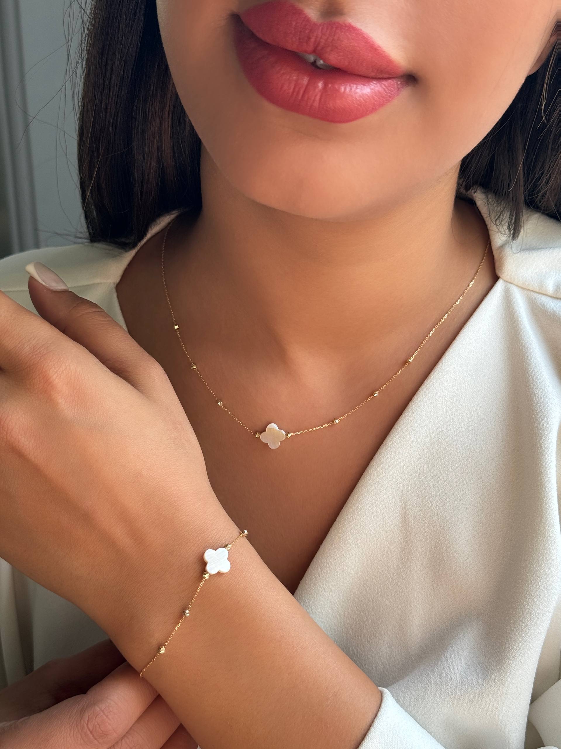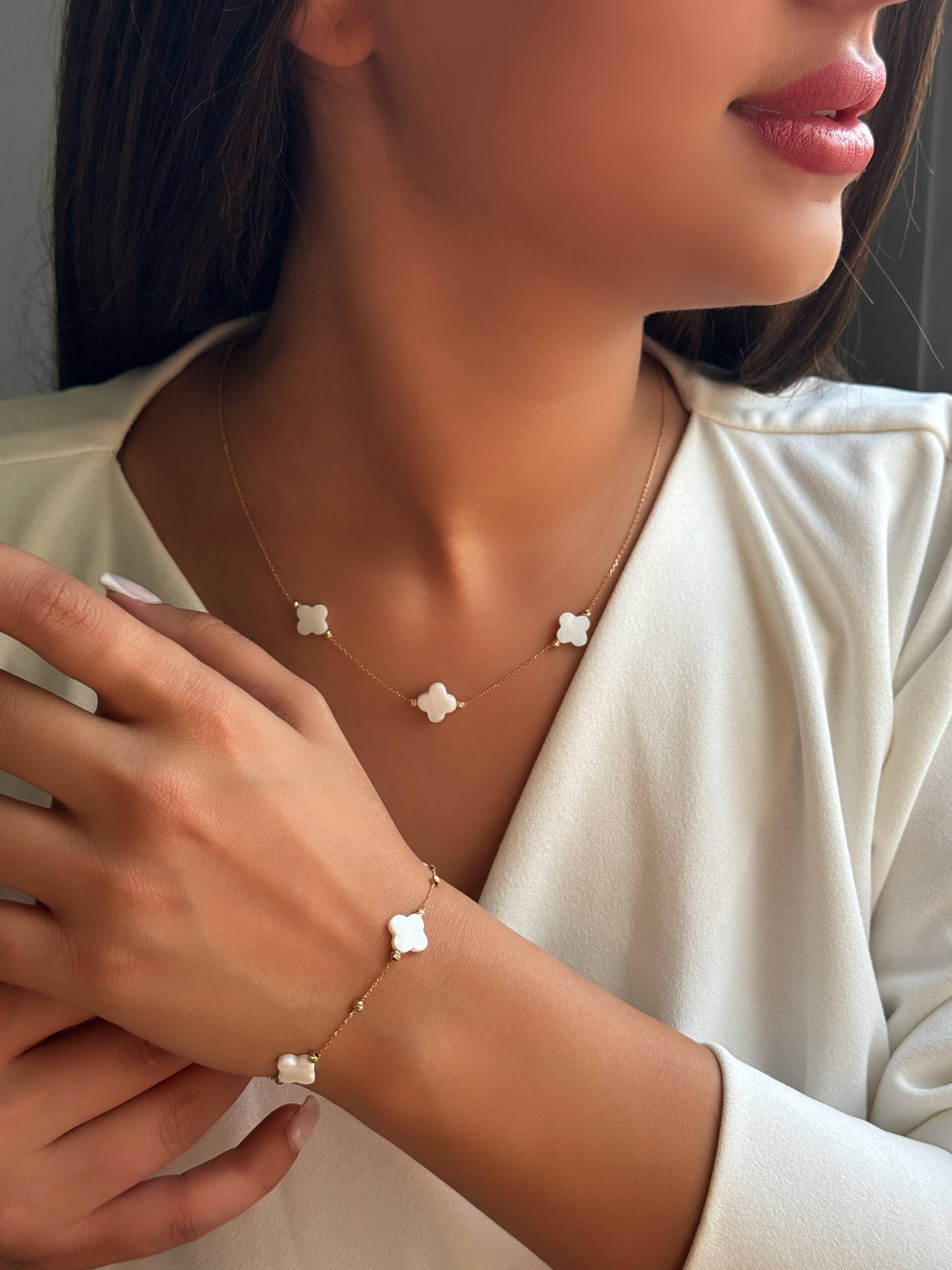 نیم ست (گردنبند و دستبند)ونکلیف تک گل سنگی