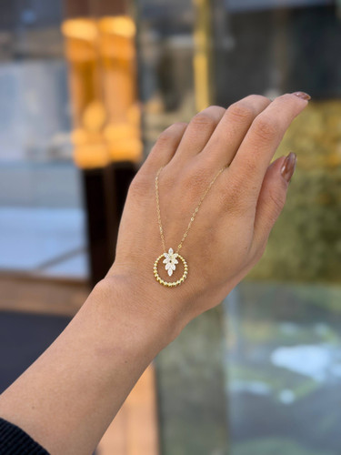 نیم ست (گردنبند و دستبند)ونکلیف تک گل سنگی