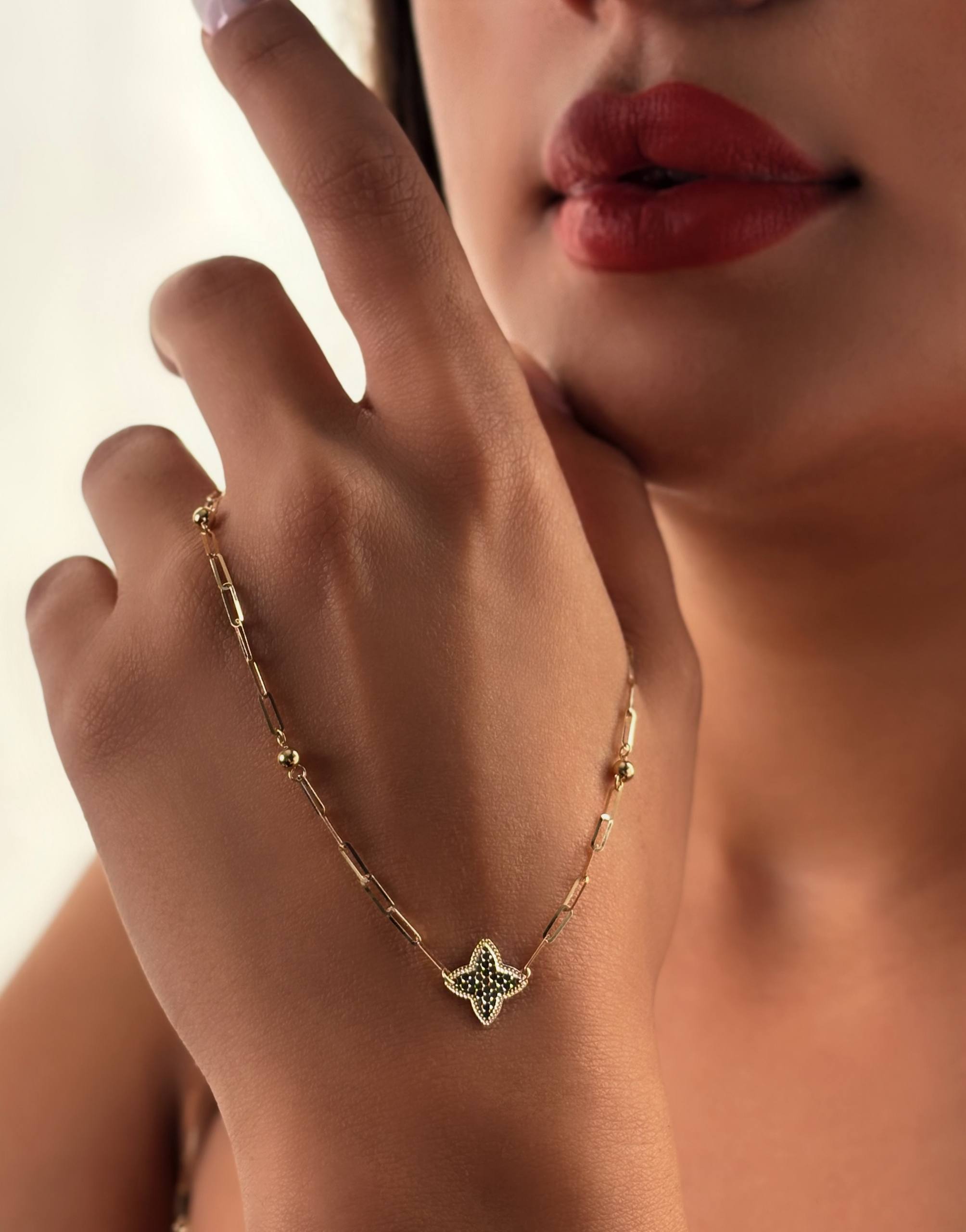 نیم ست (گردنبند و دستبند)ونکلیف تک گل سنگی