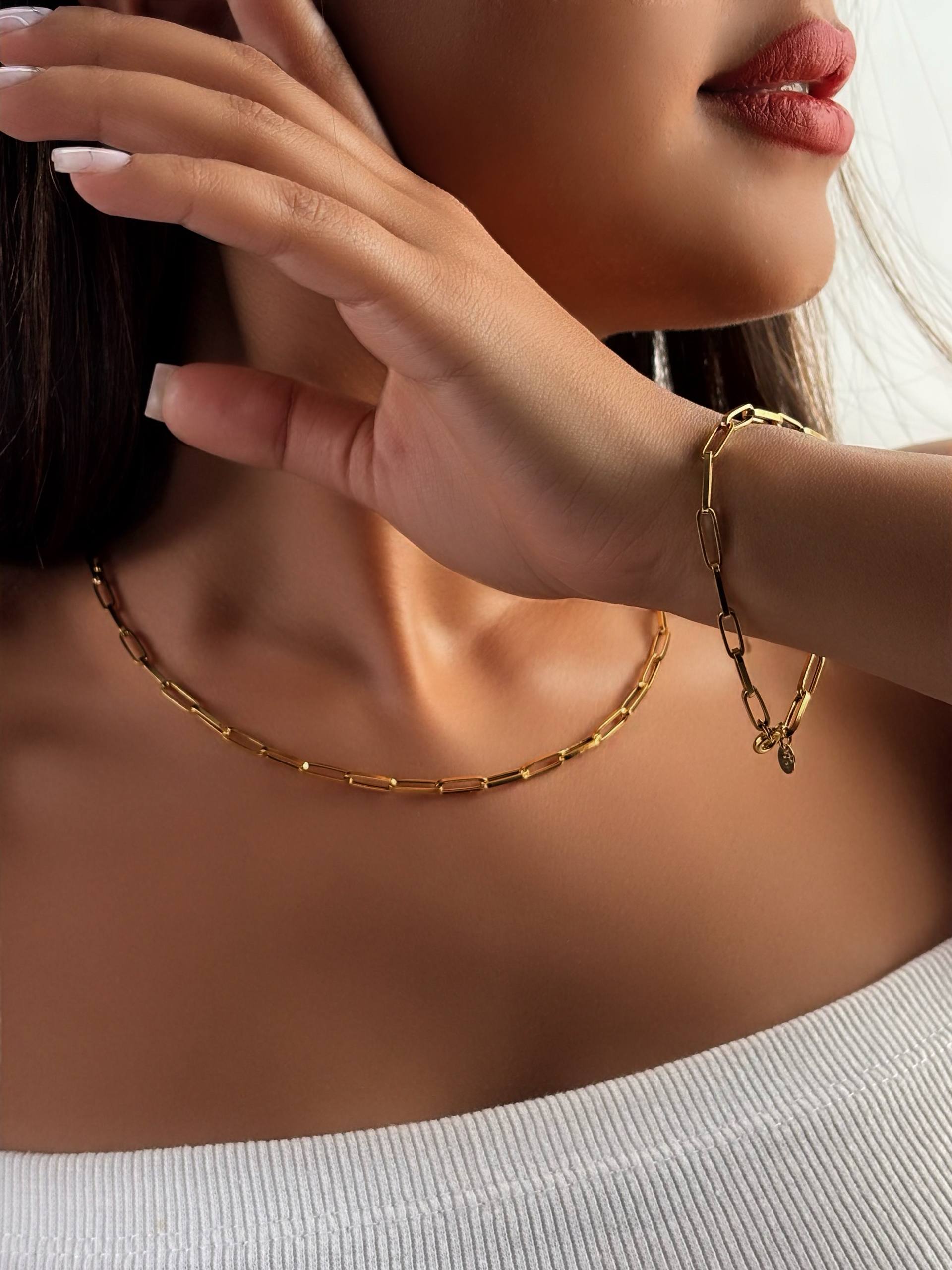 نیم ست (گردنبند و دستبند) ونکلیف دو گل سنگی